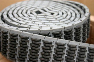 High-resistance belt with rubber inlay (up/down crate transport)
